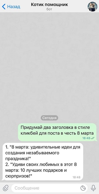 Создайте своего персонального Telegram-бота на базе ChatGPT, который будет генерировать тексты и изображения по вашим запросам